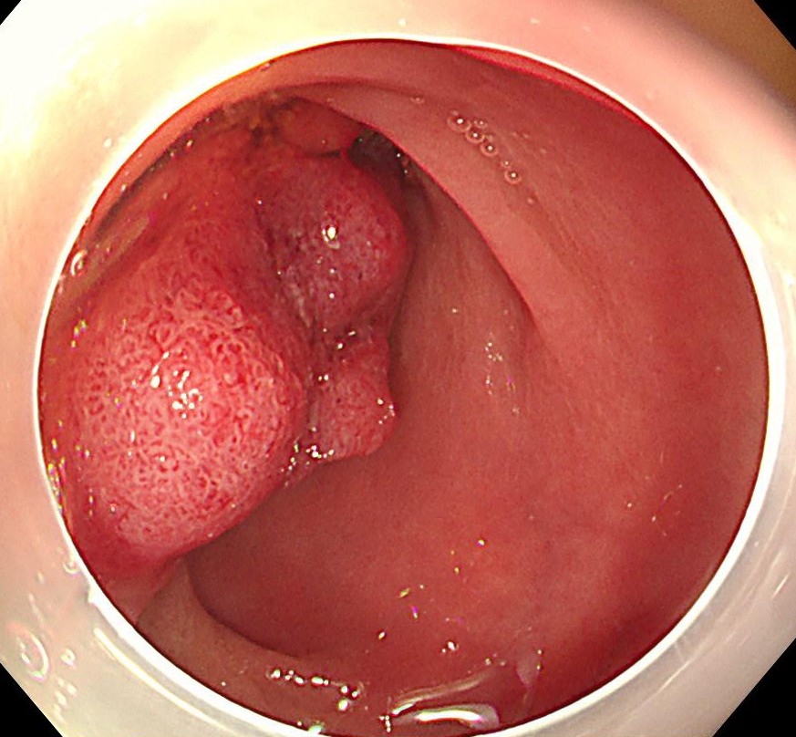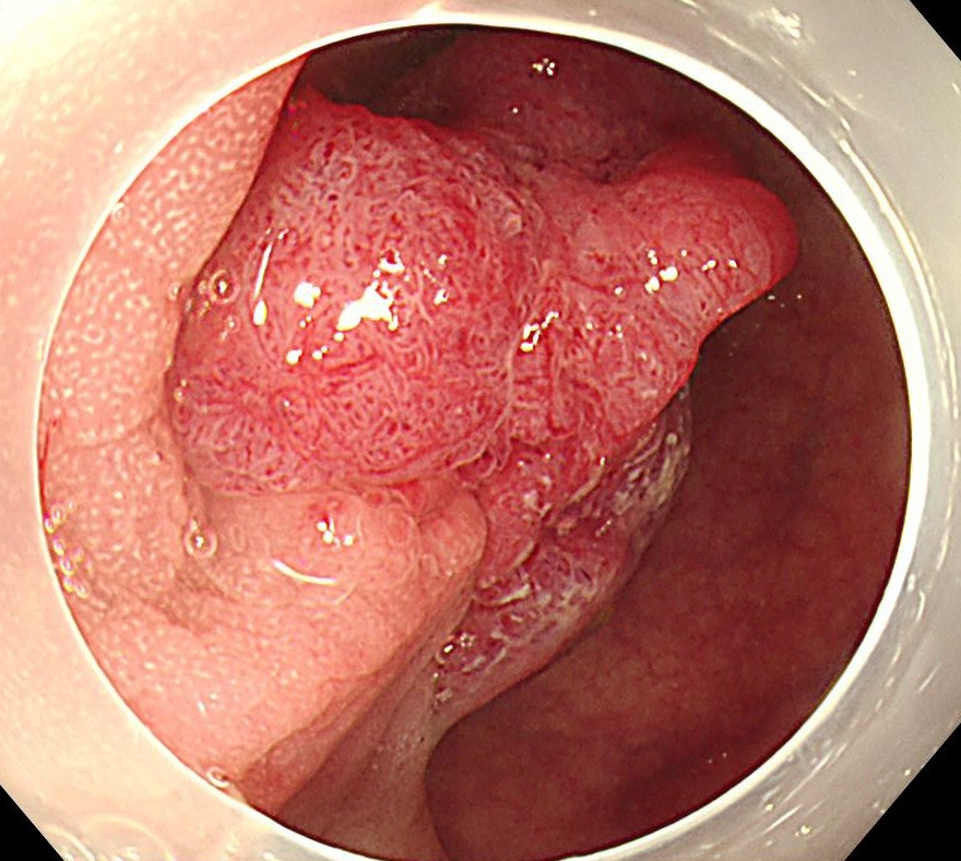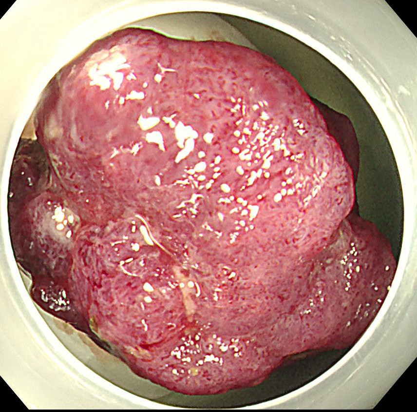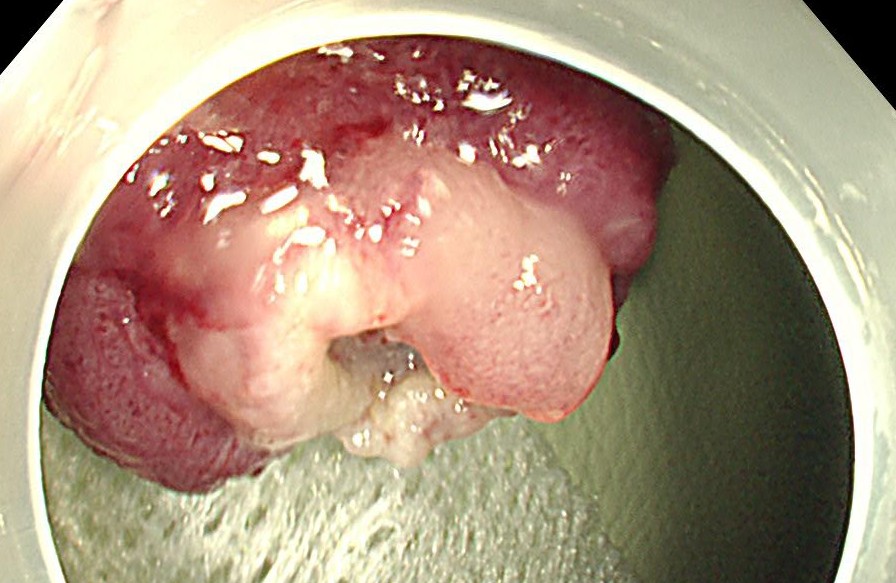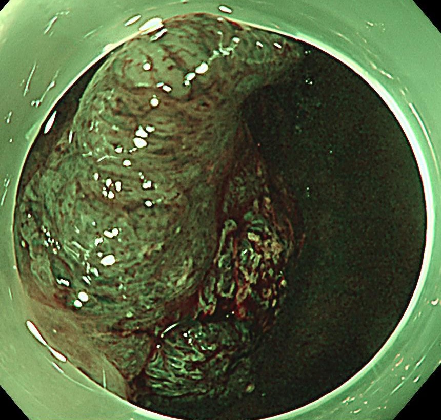 直腸S状結腸移行部に1型の腫瘍を認めます。