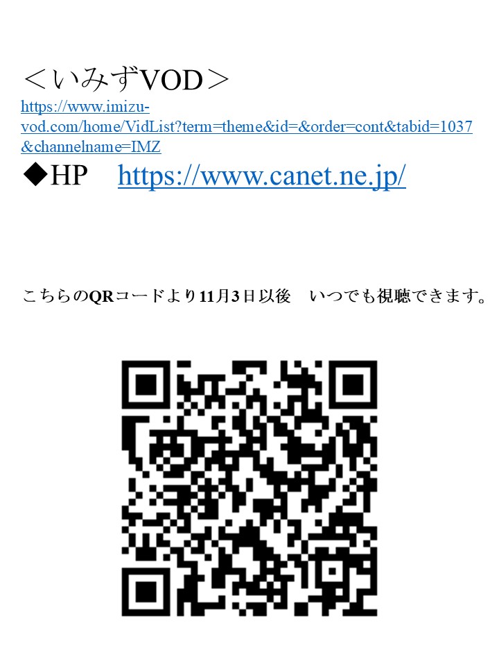 11月3日以降はインターネットサイト いみずVODからもご覧いただけます。